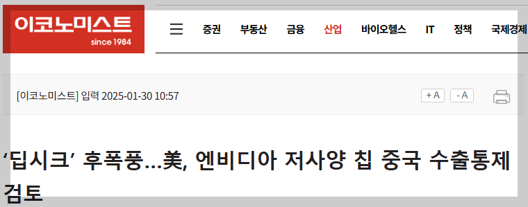 딥시크의 등장으로 인해 엔비디아를 비롯한 미국의 인공지능(AI) 관련 빅테크 기업들이 흔들리고 있습니다. 딥시크 등장에 기존 인공지능 기업들의 경쟁력이 의심받으며 최악의 주가 폭락이 일어났습니다. 엔비디아는 하루만에 무려 17% 폭락해, 5890억 달러가 증발되었습니다.