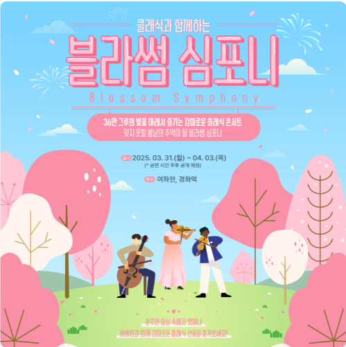 ✔ 내용: 전통 공연, 가요제, 심포니 공연, K-POP 댄스 경연대회 등 다양한 문화 예술 공연이 펼쳐집니다. 특히 여좌천과 경화역에서는 벚꽃이 만개한 풍경과 함께 심포니 공연이 예정되어 있어, 자연과 음악의 조화를 만끽할 수 있습니다.