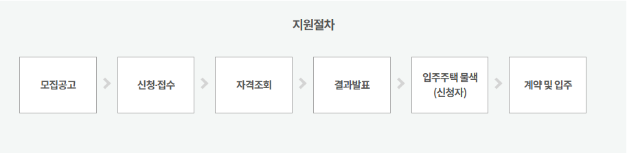 * 전세임대주택은 매입임대주택과 지원절차가 비슷하지만, 결과발표 후 신청자가 입주주택을 물색하는 단계가 추가되어 있습니다.