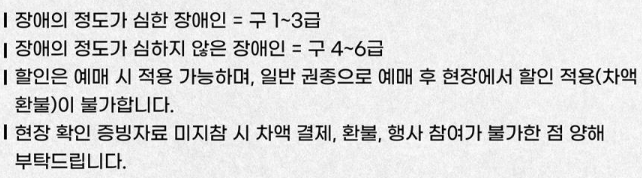 ✔ 예매대상: 65세 이상(1960년 이전 출생자), 국가유공자, 장애인